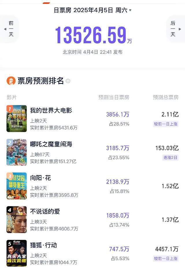 而且,明明4月4日还有新电影《猎狐·行动》上映的梁朝伟,也没有积极工作跑宣发。上映首日票房747万,他本人好像也不着急的样子。梁朝伟没有被孩子所累,工作排片从未间断,但最近这几年影片质量的确是不及格,票房成绩也很一般。
